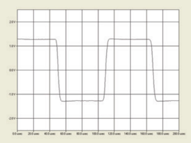 10 kHz-es négyszög jel átvitele kifogástalan, nincs belengés és túllövés.